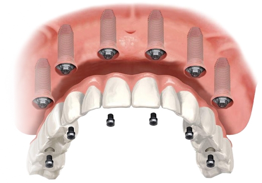 All On Six implant tekniği (altılı implan sistemi) çeşitli nedenlere bağlı olarak diş kaybı oluşmuş olan kişilere, 6 tane implantın yerleştirilmesiyle uygulanan bir tedavi tekniğidir.